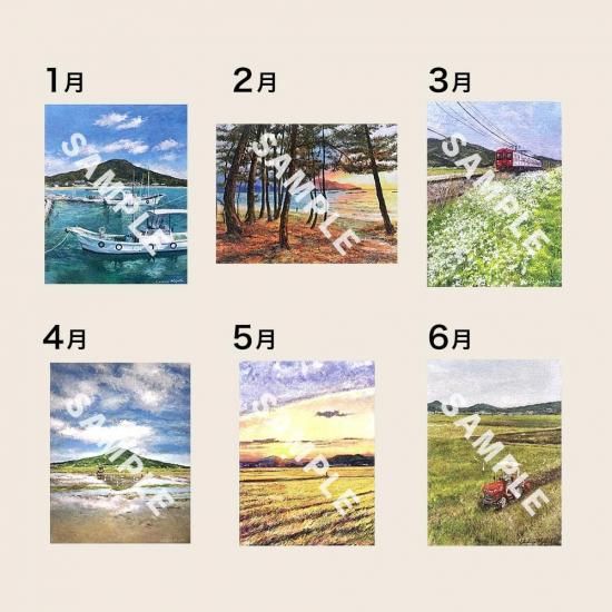 福岡県糸島市在住の画家 宮田ちひろさんが描いた絵画作品を12点集めた壁掛けカレンダーです。